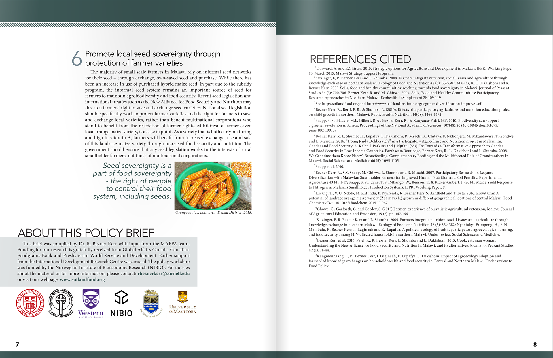 Policy brief for an education curriculum research project on agriculture and nutrition in Malawi