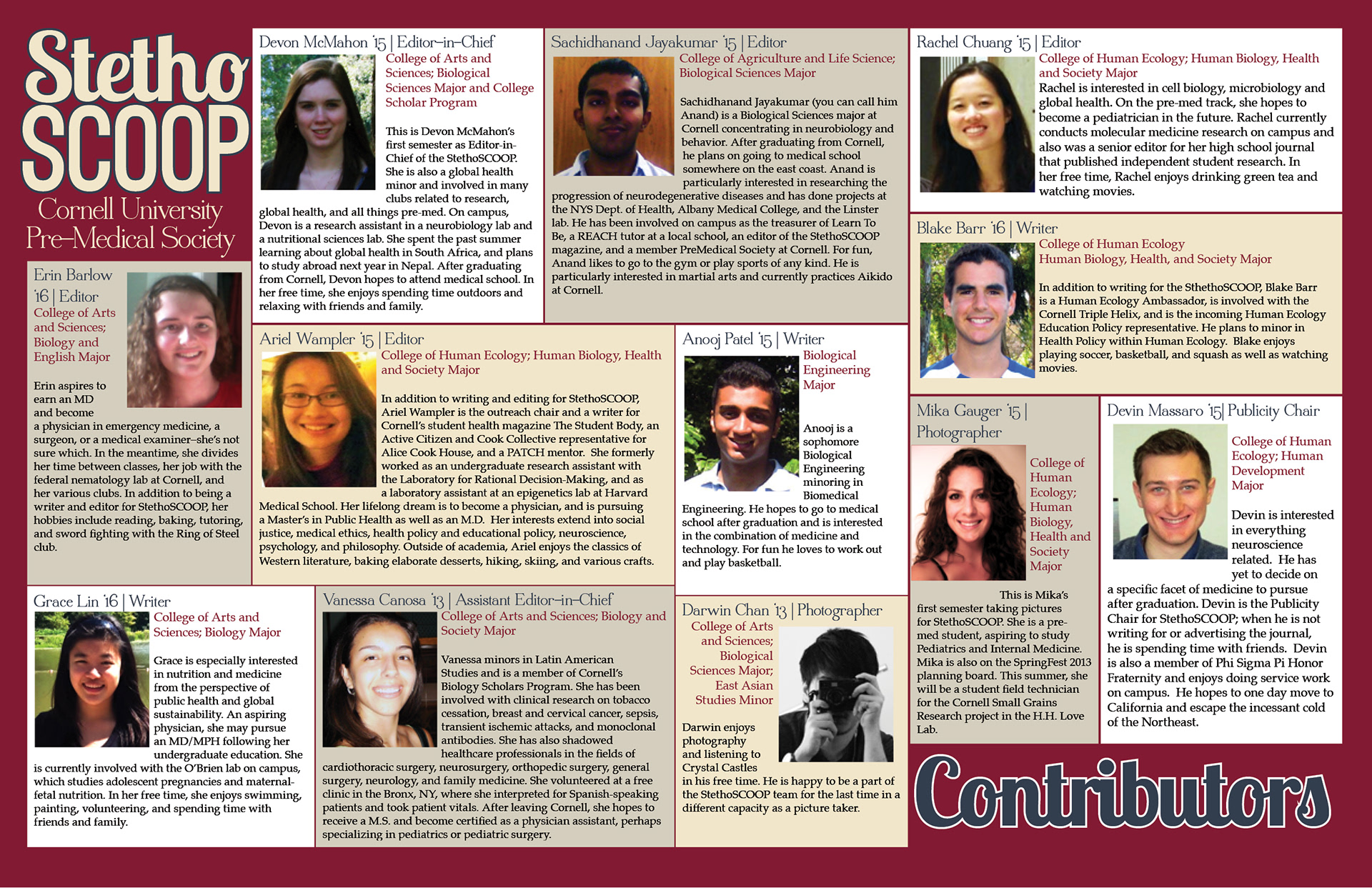 Cornell Pre-Medical Society's publication, the StethoSCOOP - Spring 2013 edition.